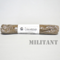 このパラコードはその強度を活かし装備類の脱落防止や結束・靴紐の代用等様々な面で活用できますのでとても重宝します。また端は火で炙れば容易にほつれ止めを行なえます。
