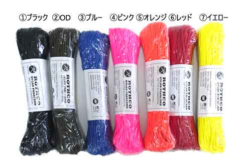 このパラコードはその強度を活かし装備類の脱落防止や結束・靴紐の代用等様々な面で活用できますのでとても重宝します。また端は火で炙れば容易にほつれ止めを行なえます。