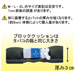 ※体に装着するとパットの厚み分(約5cm)短くなります。体格によって個人差があります。