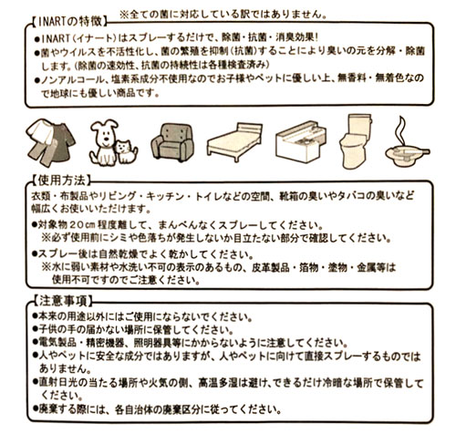 厚生労働省認定商品 イナート(INART)除菌抗菌消臭ミストスプレー30ml